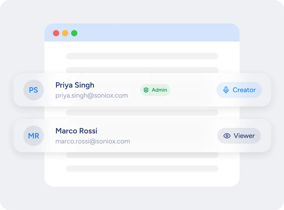 Bring your team’s transcripts, summaries, and insights into one organized workspace. Admins can easily manage users and control who sees what.