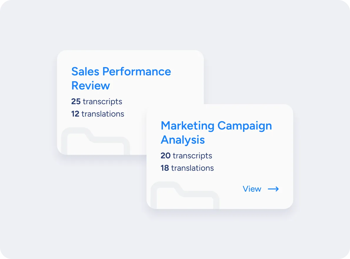 Create projects to group conversations by client, meeting, or workflow. Give teammates the right level of access, and keep everything structured without slowing anyone down.