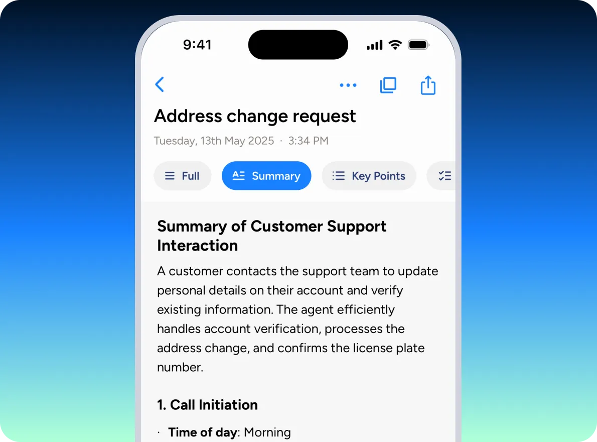 Transcribe conversations in real time, generate summaries, analysis, and answers to your questions.