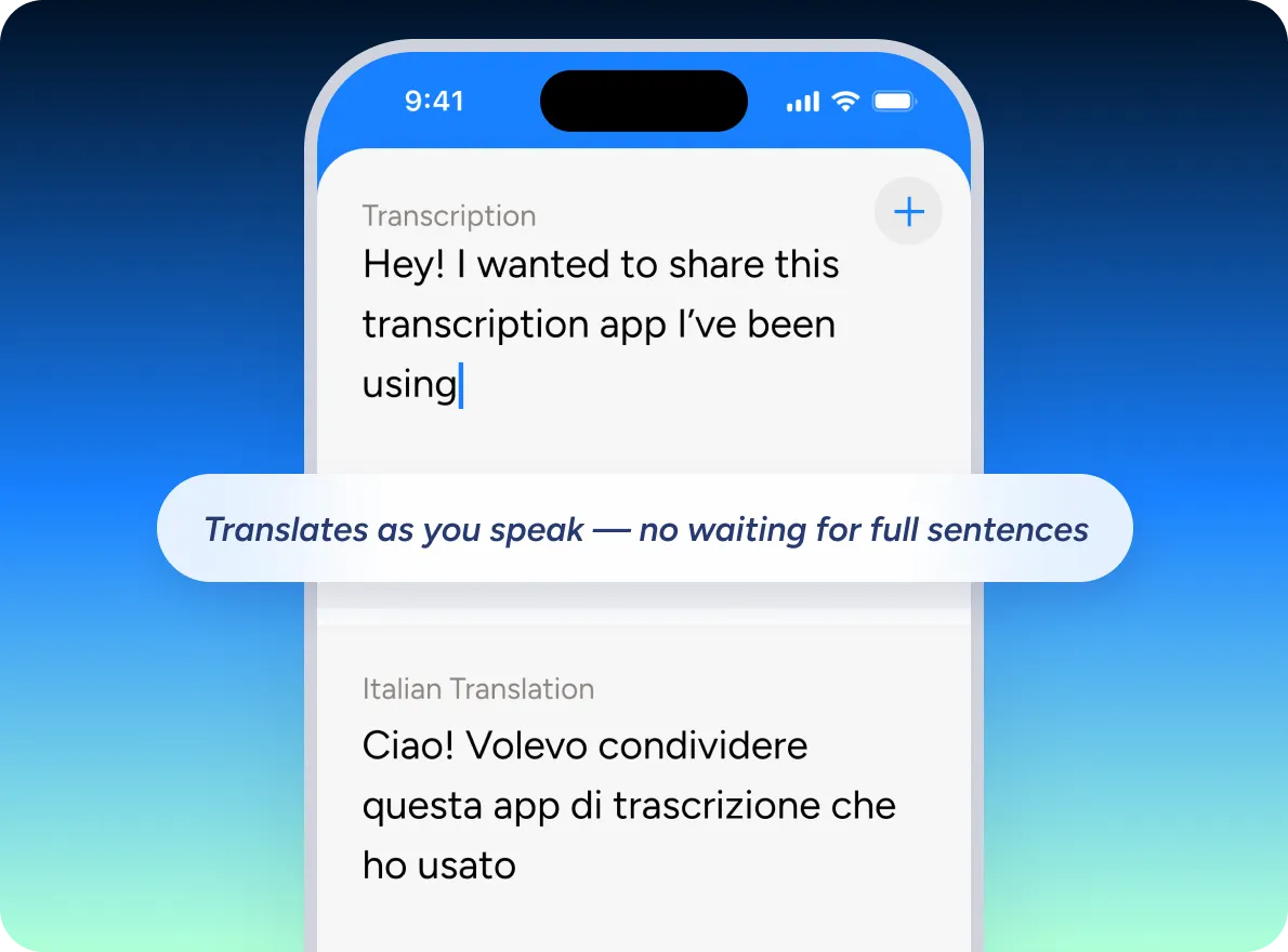 Soniox Translator captures and translates speech on mobile, displaying live translated text on your device.