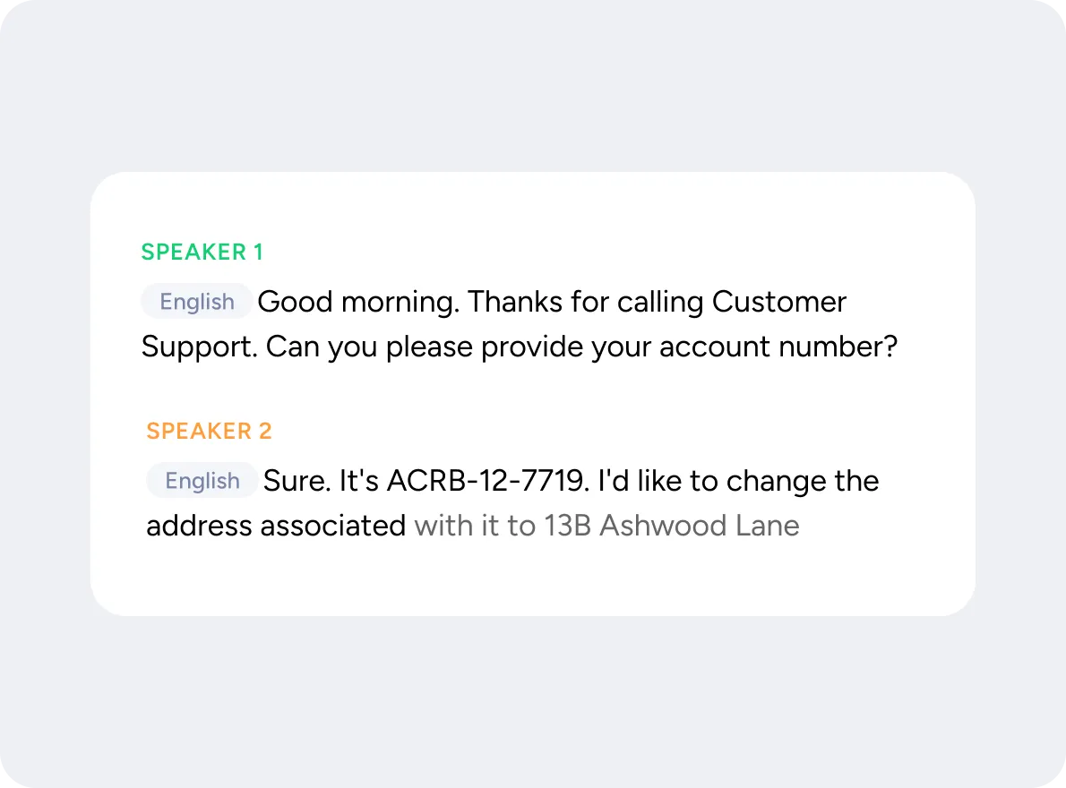 Add real-time transcription, language and speaker detection, translation, and more to your apps and agents – with global language support and one API.